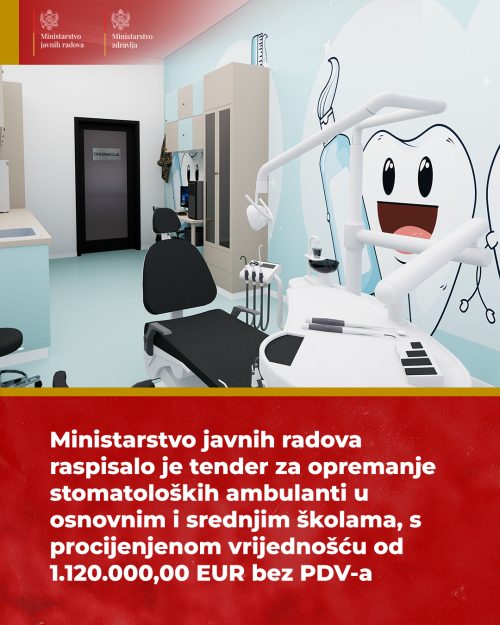 Ministarstvo javnih radova u saradnji sa Ministarstvom zdravlja raspisalo je tender za nabavku opreme, čime počinje realizacija projekta koji ima za cilj da učenicima obezbijedi kvalitetnu stomatološku njegu.