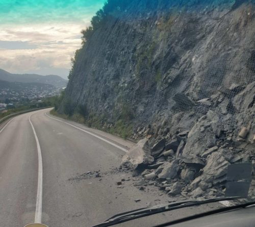 Na magistralnom putu Podgorica–Bar, neposredno poslije tunela Sozina, došlo je do manjeg odrona zemlje i kamenja na kolovoz.
