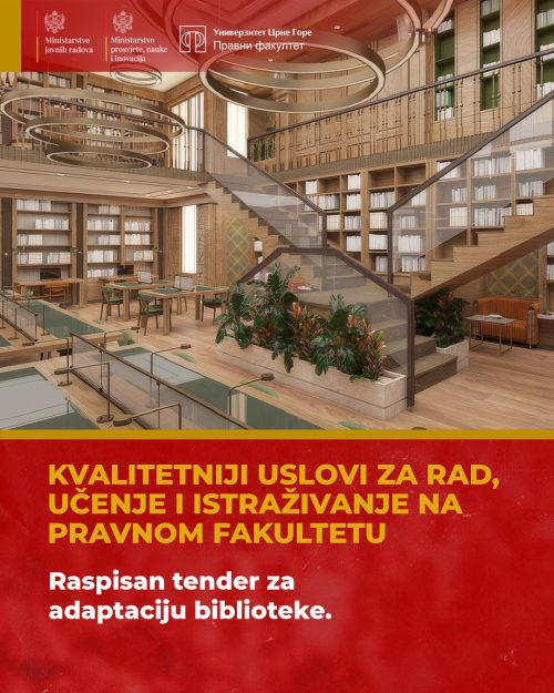 Ministarstvo javnih radova je, u okviru kontinuiranih aktivnosti na unapređenju obrazovne infrastrukture, raspisalo javnu nabavku za izvođenje radova na adaptaciji biblioteke Pravnog fakulteta Univerziteta Crne Gore, procijenjene neto vrijednosti od 537.000 eura, saopštili su iz tog resora.