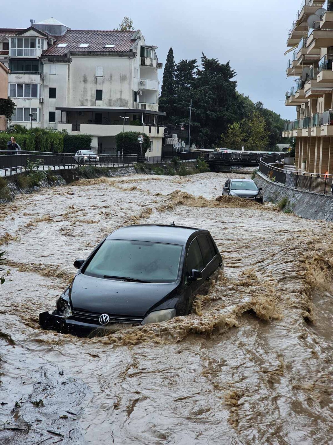 Rijeka Grđevica, koja tokom većeg dijela godine presuši, sinoć je zbog obilnih padavina narasla i poplavila vozila koja su vozači ostavili u njenom koritu, koje se ujedno koristi kao najveći parking u centru Budve.