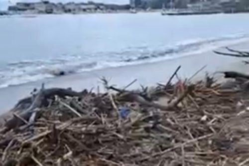 Pješčana plaža zatrpana je, a zakupci obližnjih lokala počeli su čišćenje.