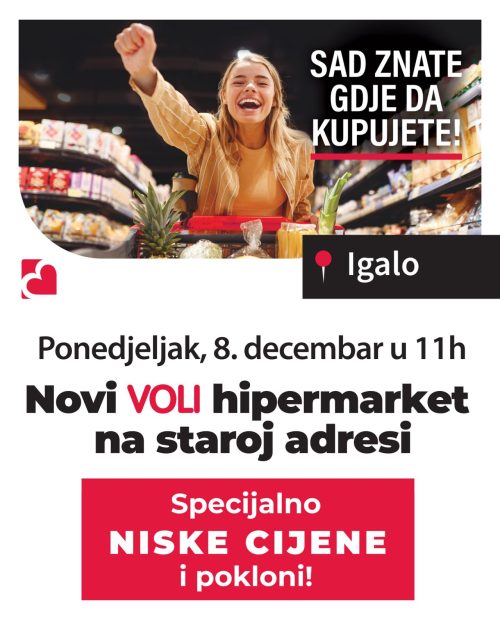 Na mjestu omiljenog marketa u hercegnovskoj opštini, gdje gdje je svaki odlazak u prodavnicu bio mali susret sa poznatim licima, u ponedeljak, 8. decembra otvara se potpuno novi Voli Hipermarket u Igalu (Sutorina). Značajno prostraniji, moderno koncipiran, obogaćene ponude, ovaj objekat je izgrađen tako da zadrži ono što se ne može mjeriti kvadratima – duh domaće topline i bliskosti.