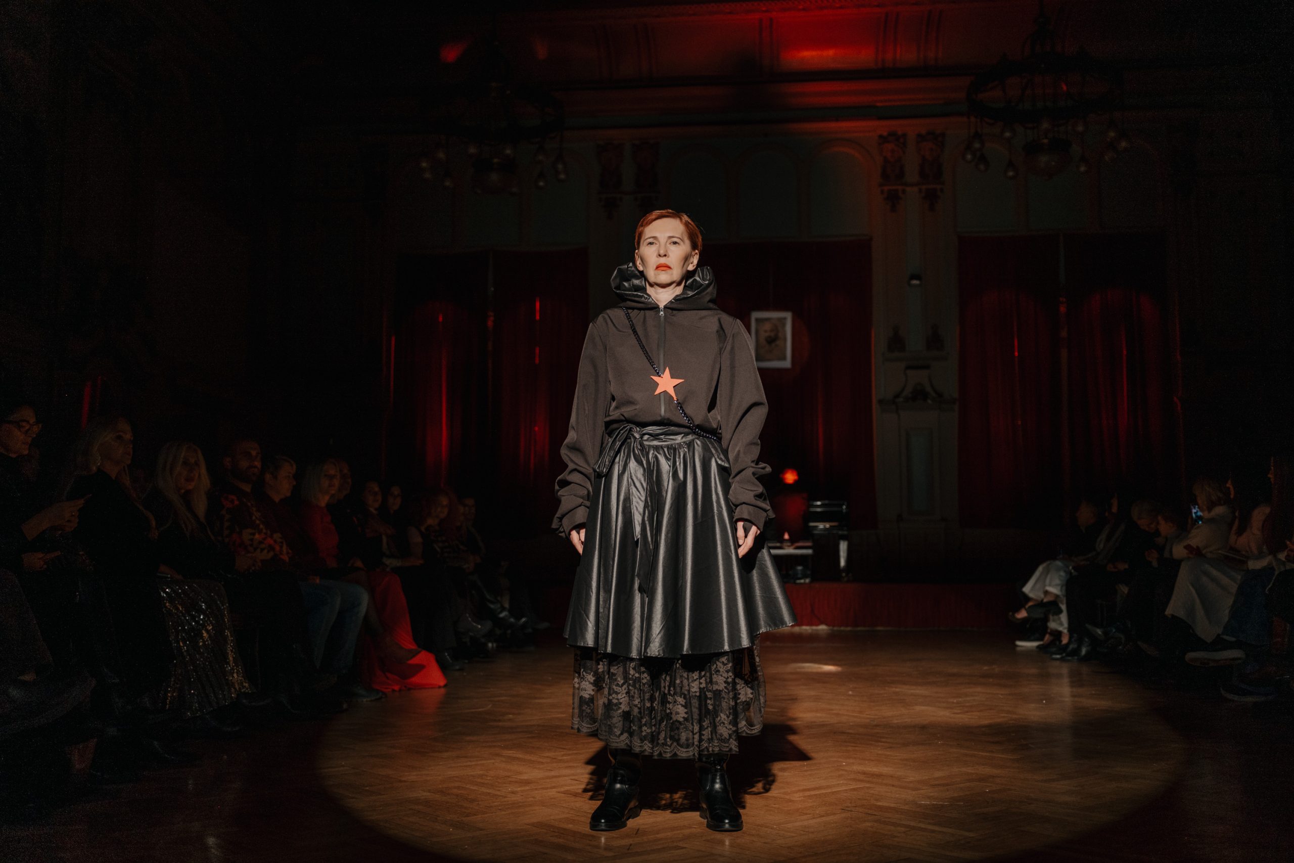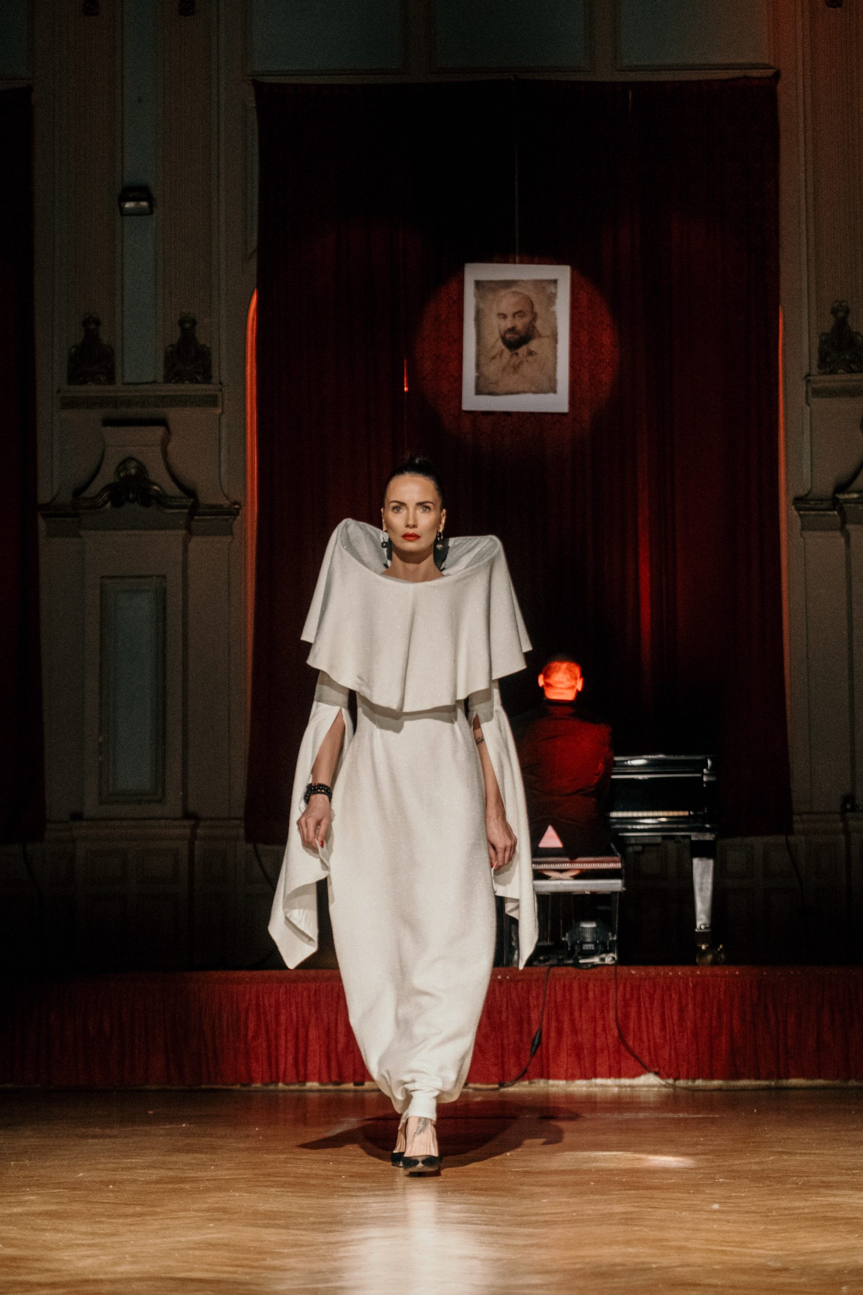 Posebnu dimenziju događaju dao je i performativni čin samog dizajnera: tokom cijele revije Haad je sjedio za klavirom, okrenut leđima publici i sceni, stapajući se s ambijentom i potpuno se odričući kontrole nad vlastitom revijom. Ovaj simbolički gest prepuštanja, povjerenja i unutrašnjeg oslobađanja publika je dočekala snažnim aplauzom.
