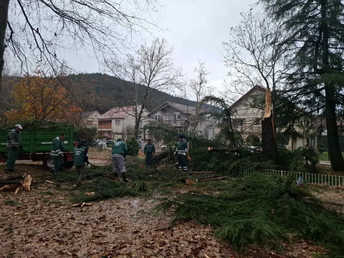 Ekipe Gradskog zelenila uklanjaju ostatke stabla.