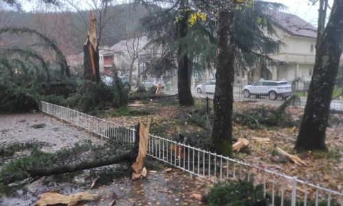 Tokom minule noći grom je udario u stablo koje se nalazi u dvorištu Osnovne škole „Mileva Lajović Lalatović“ u Nikšiću, i tom prilikom napravljena je manja šteta na dijelu krovne konstrukcije objekta, a polomljen je i jedan prozor, prenosi RTNK.