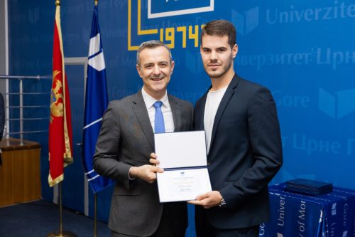 Nikola Kovačević, student treće godine osnovnih studija na Pravnom fakultetu Univerziteta Crne Gore, proglašen je najboljim studentom i dobitnikom nagrade za studijsku 2025/26. godinu sa prosjekom 9.88. Nagradu mu je uručio rektor UCG, prof. dr Vladimir Božović, na svečanosti održanoj na Univerzitetu, saopšteno je iz Univerziteta.