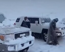 Pustinja i planinski djelovi Saudijske Arabije zabuhelili su se od snježnog pokrivača koji je prekrio nekoliko regiona, pretvarajući planine okružene pustinjom u zimsku čaroliju. Hladno vrijeme i jake kiše donijele su snježne padavine i u neke od gradova.