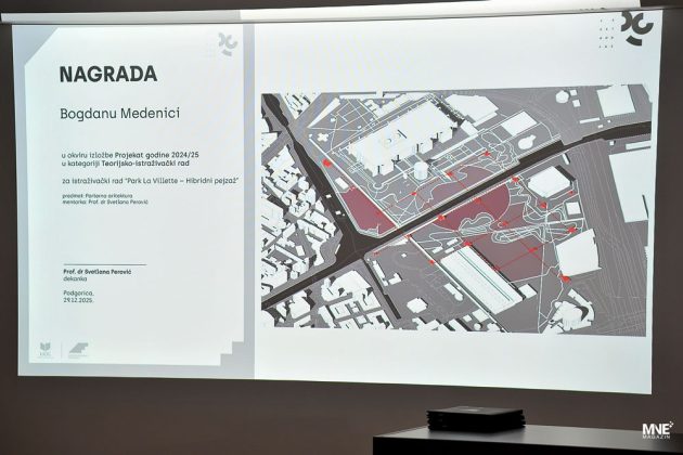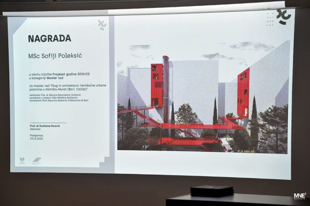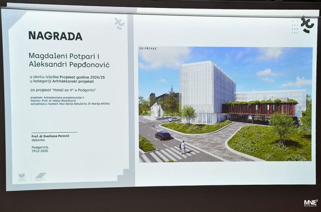 – Mnogi smo još pod utiskom brojnih aktivnosti i projekata koje smo realizovali u proteklim mjesecima. Ipak, upravo ovo veče izdvajamo kao posebno važno, jer izložba studentskih radova nije samo prezentacija rezultata, već čin odgovornosti, samopouzdanja i javnog nastupa budućih arhitekata i urbanista. Ovo je trenutak u kome naši studenti, pred očima javnosti, polažu jedan mali ali značajan ispit profesionalne zrelosti. Posebno raduje činjenica što se izložba Projekat godine ove godine realizuje upravo u našoj kući – mjestu u kojem će se rađati nove ideje, razvijati kreativnost i profesionalno oblikovati generacije studenata – kazala je Radovanović.