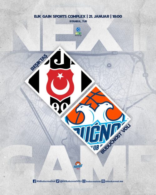 U okviru 15. kola Eurokupa čeka nas gostovanje Bešiktašu u Istanbulu, koje je na programu 21. januara, sa početkom u 18 sati, najavljuju u KK Budućnost Voli.