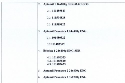 – Sumnja u pogledu bezbjednosti odnosi se na infant formulu, follow-on formulu i FSMP formulu brenda Nutricia (Danone), porijeklom iz Irske, koje se povlače sa tržišta. Ovi proizvodi se uvoze u Srbiju, gdje se nalazi centralni distributivni centar, dok se distribucija za tržište Crne Gore vrši iz Srbije, u okviru regionalne distribucije – kazali su iz Uprave.