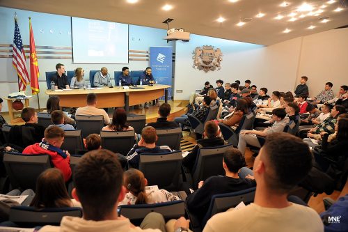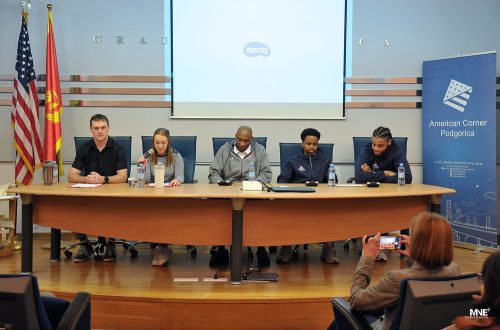 NCAA March Madness sa košarkašima Budućnost Volija Rašidom Sulejmonom, Jogijem Ferelom i Džuvonom Morganom organizovao je American Corner Podgorica danas u Multimedijalnoj sali KIC ,,Budo Tomović”.