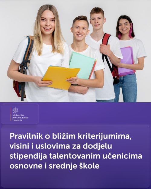 Ministarstvo prosvjete, nauke i inovacija je donijelo novi Pravilnik o bližim kriterijumima, visini i uslovima za dodjelu stipendija talentovanim učenicima osnovne i srednje škole
