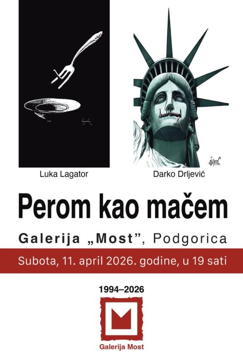 Povodom 32 godine postojanja u galeriji ,,Most” u Podgorici u subotu, 11. aprila u 19 sati biće otvorena izložba karikatura Luke Lagatora i Darka Drljevića,  poznatih crnogorskih, a svjetskih stvaralaca.