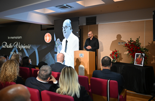 – Ima trenutaka kada sve ono što bismo htjeli da kažemo ostaje zarobljeno između bola i zahvalnosti, između gubitka i sjećanja. Ovo je jedan od tih trenutaka. Duško Vujošević, naš Dule, napustio nas je 8. aprila ove godine, tiho, u Beogradu, gradu u koji ga je sudbina dovela kao petogodišnjeg dječaka iz Titigrada. Rođen 3. marta 1959. godine u Titogradu, bio je Podgoričanin i Crnogorac po rođenju, Beograđanin po odrastanju, a po izboru i duhu građanin svijeta. Po načinu mišljenja i života aristokrata. Pasionirani čitalac, zaljubljenik u umjetnost, posebno u slikarstvo – kazao je.