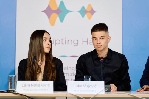 – Problem je što naši prijatelji ne znaju uvijek kako da nam pomognu. To treba da se promijeni. Potrebni su nam odrasli kojima vjerujemo – roditelji, nastavnici, stručnjaci – koji će stvoriti siguran prostor u kojem možemo da govorimo o onome što nam se dešava, i online i offline, bez straha da ćemo biti okrivljeni, osuđivani ili da će nam biti oduzeti telefoni – dodao je Luka Vujović, UNICEF-ov mladi reporter iz Crne Gore.
