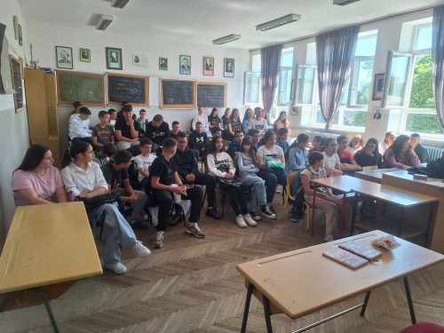 U prijatnom ambijentu kabineta fizike, učenici odjeljenja VII-3 i VIII-2, zajedno sa profesoricom Tatjanom Đurović i direktoricom Olgom Grgurović , uživali su u pjesmama poput „Prvi Njutnov zakon“, „Čarolija kruženja vode“, „Zašto svemir raste“, „Atomi u tvome tijelu“, „Eratosten i sjena“, „Jabuka i Njutn“ i „Lajkin duh“, ali i brojnim drugim.