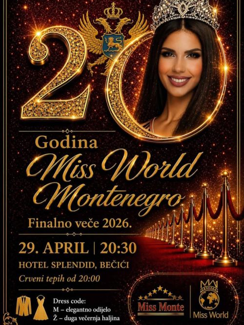 U srijedu 29. aprila u hotelu Splendid u Bečićima biće održano finalno veče Izbora za Miss Crne Gore. Od 13 djevojaka jedna će ponijeti titulu Miss Crne Gore i predstavljaće našu zemlju na izboru za mis svijeta u Vijetnamu.