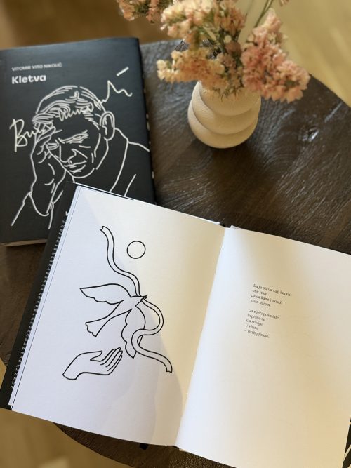 – Drugom zbirkom Vitove poezije Kletva uhvatili smo taj njegov ritam i krvotok. Prvom zbirkom smo pružili njegovim poštovaocima priliku da uživaju prije svega u poeziji, ali i u skladu koji se desio između stihova, ilustracija, dizajna, pratećih tekstova… Ovom drugom zbirkom dopunjavamo i zaokružujemo priču – pred vama su pjesme Vitomira Nikolića kojih nije bilo u prvom dijelu zbirke. Vjerujem da je ovim izdanjem zaokruženo izdavaštvo njegovog pjesničkog opusa, jer nije izostavljen ni jedan jedini stih koji je napisao. A to je ono što su njegovi poštovaoci željeli i zasluživali dugo godina – ističe Danica Nikolić, Vitova kćerka u predgovoru izdanja kroz tekst ‘’Grom u naše duše”.